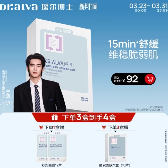 30.2元包邮!瑷尔博士舒安面膜 买10片赠2片