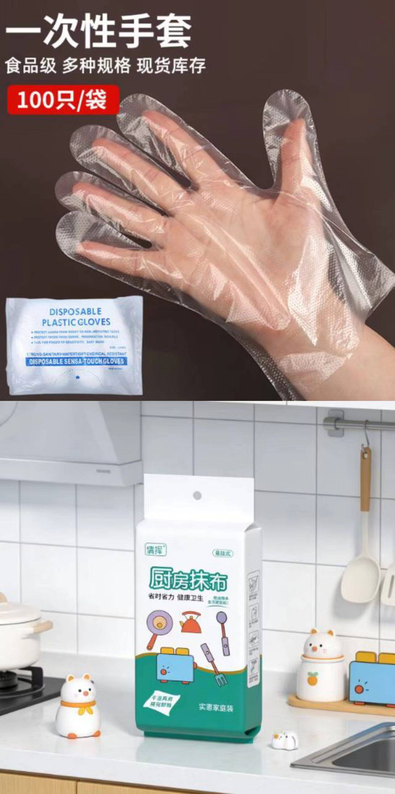 1.01一次性食品手套与抽式抹布组合,超值低价带回家