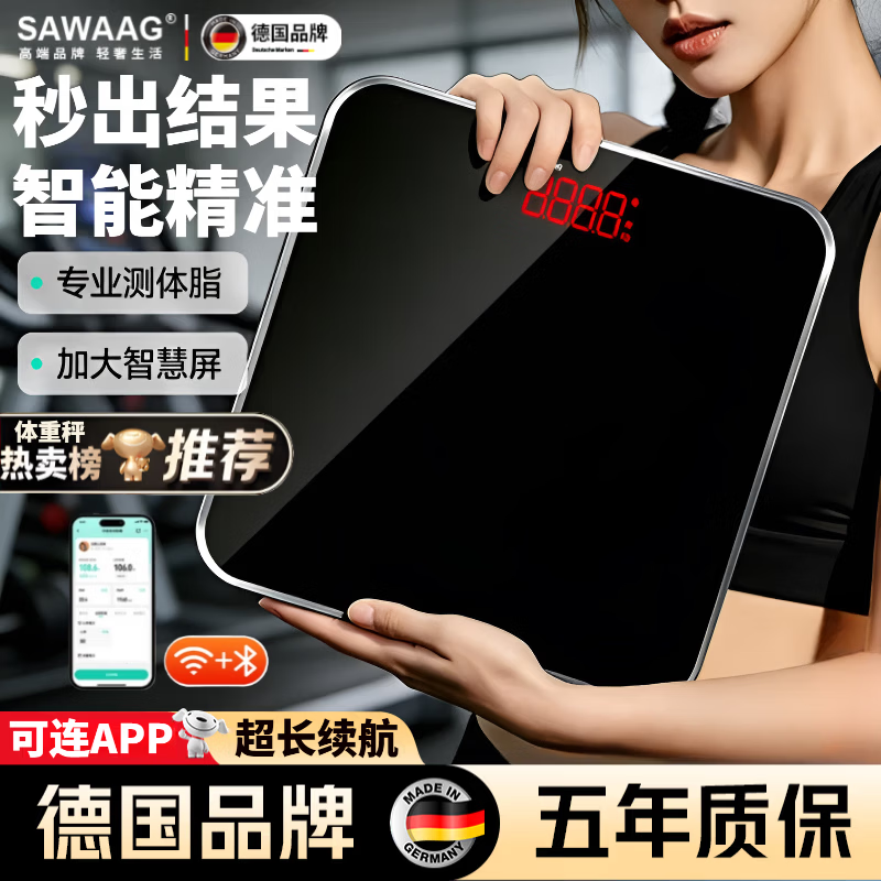 ¥129 飒望德国体重秤减肥专用精准到0.01克体脂秤称体重的电子秤家用人体高精度充电款粉色便携 闪充黑【超级闪充 可测室温 LED隐屏】 金榜推荐丨百万热销 139