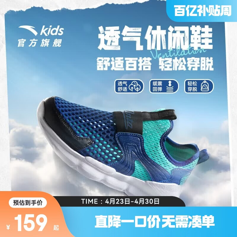 安踏男女童一脚蹬网眼休闲鞋 plus到手价109.31元