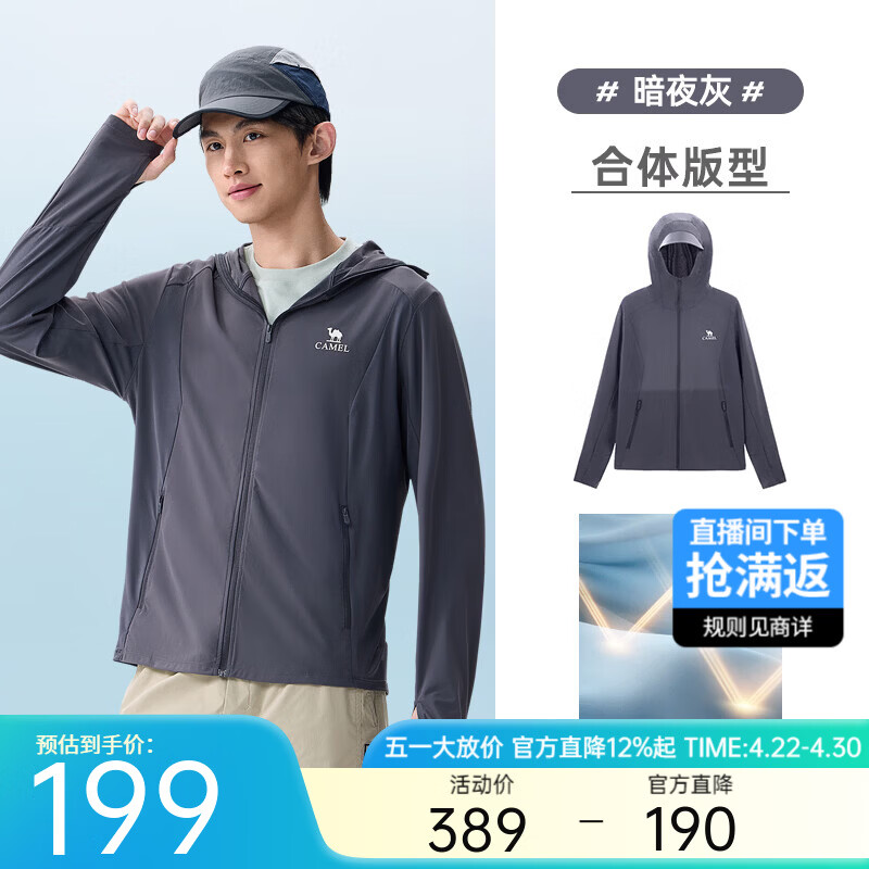 骆驼防紫外线骑行钓鱼服UPF200+,到手价125元