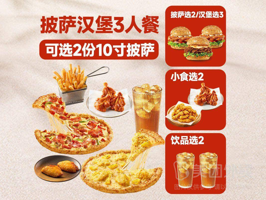 必胜客3人手作披萨汉堡6件套兑换券 券后价80.90元