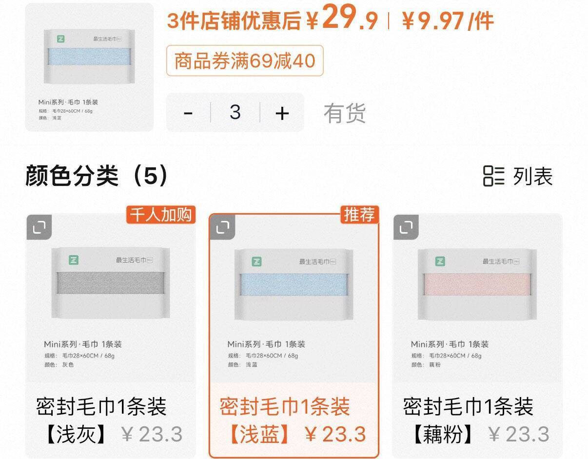 最生活毛巾任选3条仅需29元,折合9.9/条