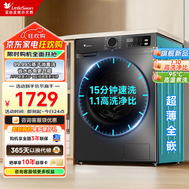 小天鹅10KG滚筒洗衣机到手价仅1049元