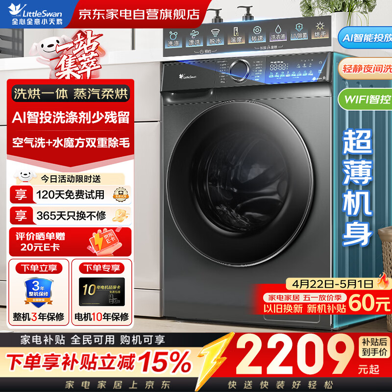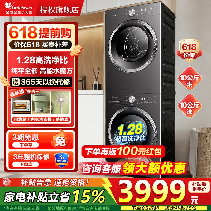 小天鹅洗烘套装直降至高4410元,享6折家电补贴