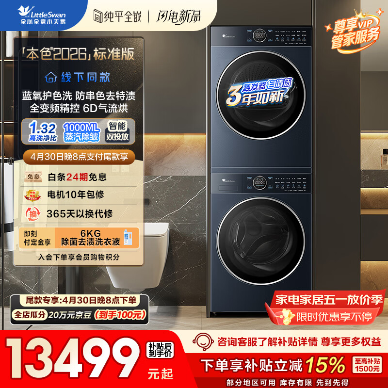 小天鹅本色2026洗烘套装 到手价13499.1元