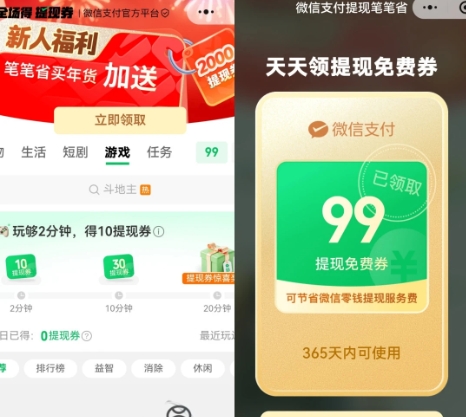 1 金币 = 100 元免费提现额度,还能抽额度盲盒。