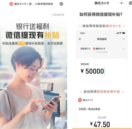 微信搜索:腾讯大 V 卡 小程序,绑定银行卡。