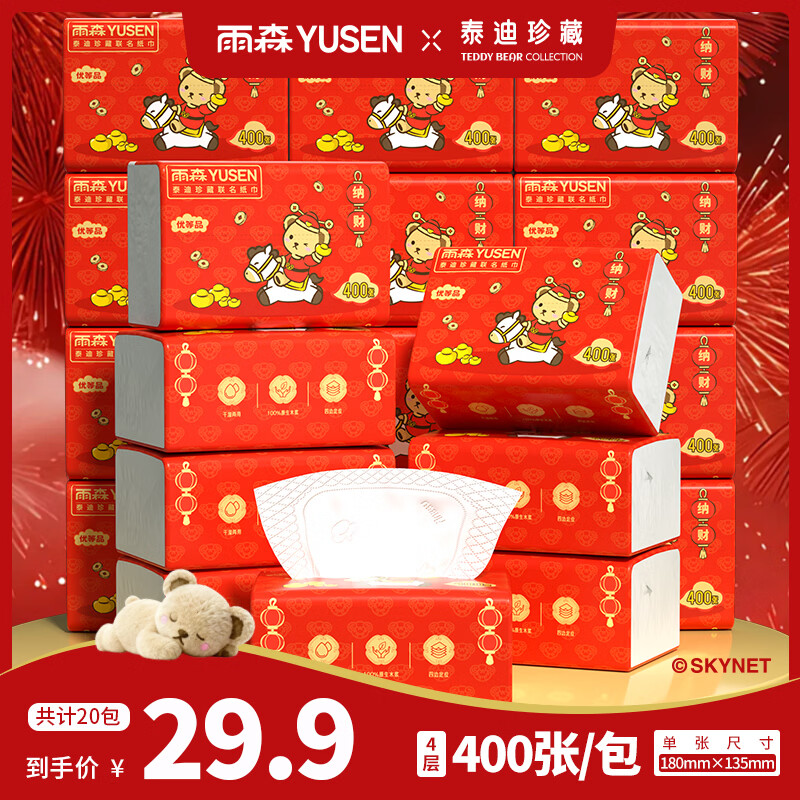 雨森新年款抽纸400张*20包最终到手价24.9元
