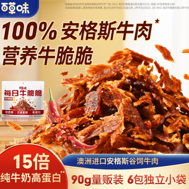 25.8元包邮!百草味 安格斯超薄牛肉脆180g