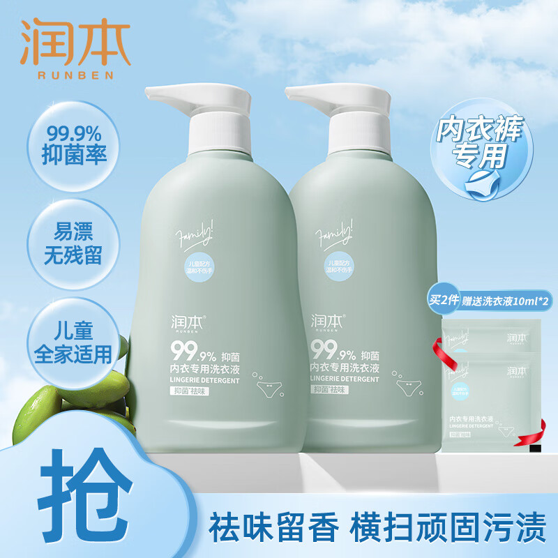 润本内衣洗衣液2瓶装仅需18.41元,plus会员再赠20ml
