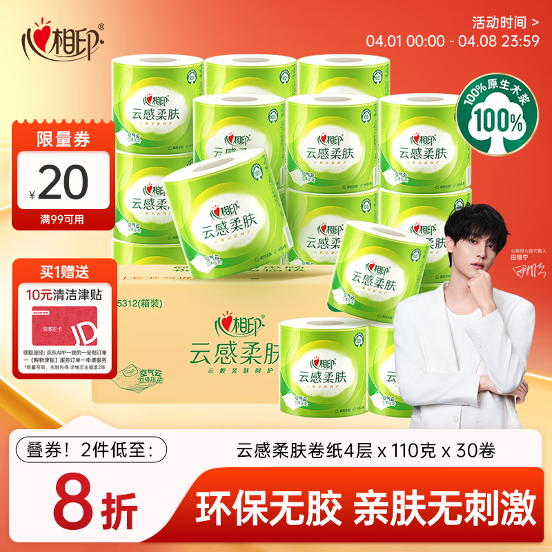 心相印有芯卷纸30卷,PLUS首购叠加津贴仅42.41元