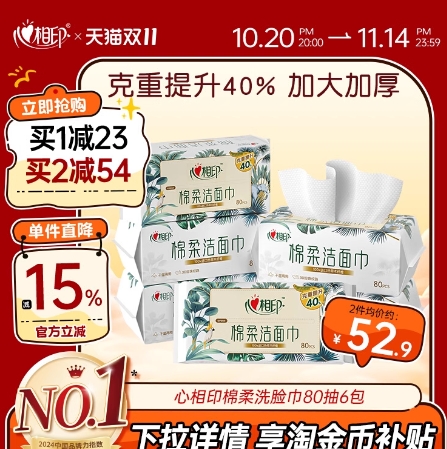 16.6元包邮!心相印.洗脸巾50抽*4包