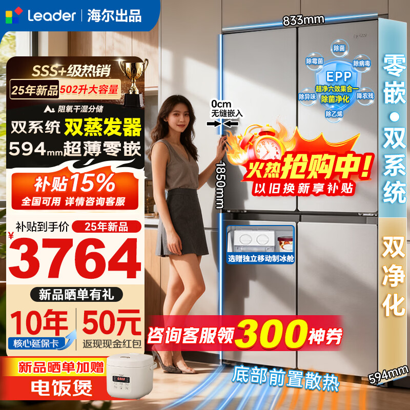海尔502L超薄零嵌冰箱 8折到手3763.79元
