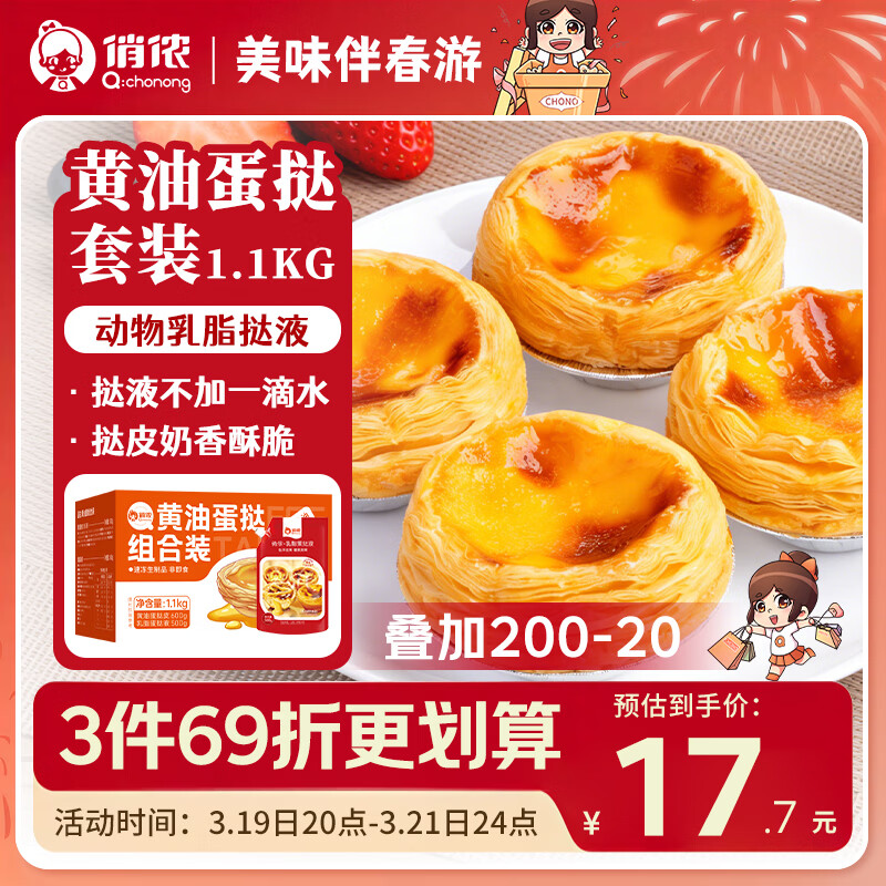 俏侬葡式黄油蛋挞组合+赠80只蛋挞皮,首单凑单后低至7.95元