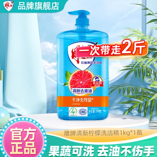 2.9元!雕牌 红柚薄荷洗洁精 1kg*1瓶