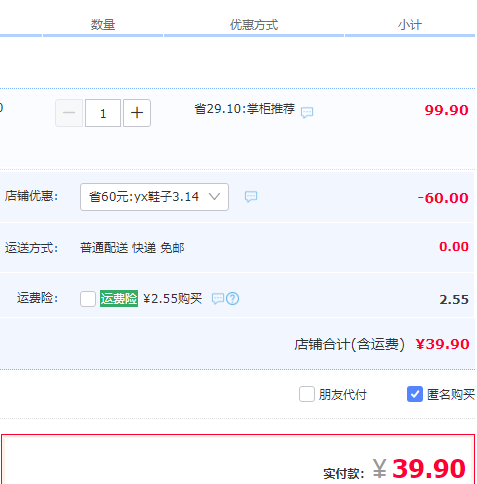 售价¥99.9元,可领取60元优惠券,实付39.9元包邮