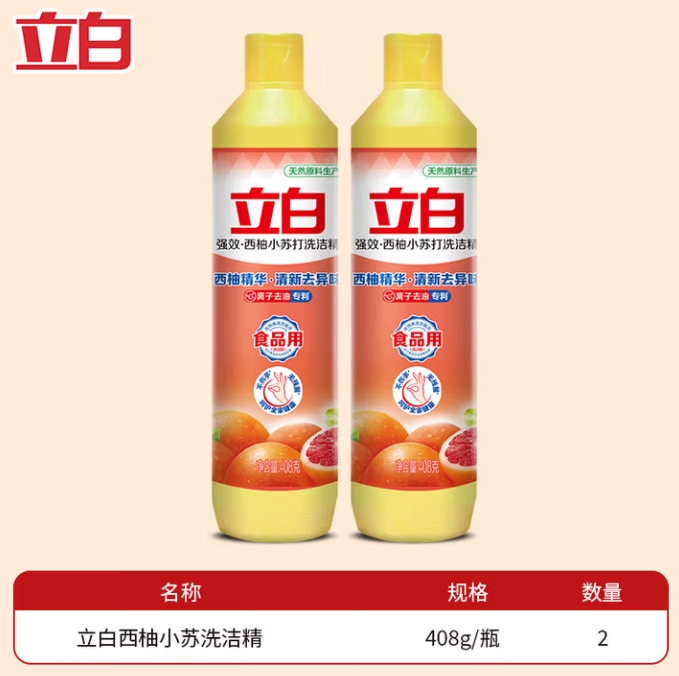 6.9元包邮!立白洗洁精408*2瓶