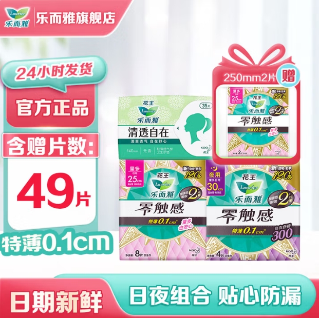 14元包邮!乐而雅 卫生巾49片