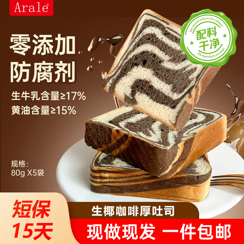Arale牛乳生椰咖啡厚切全麦吐司面包400g 最终到手价5.77元
