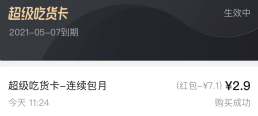 注:有的是写的自动续费可以2.9入手,买好之后可以在吃货卡页面点击“续费管理”,取消掉自动续费即可。