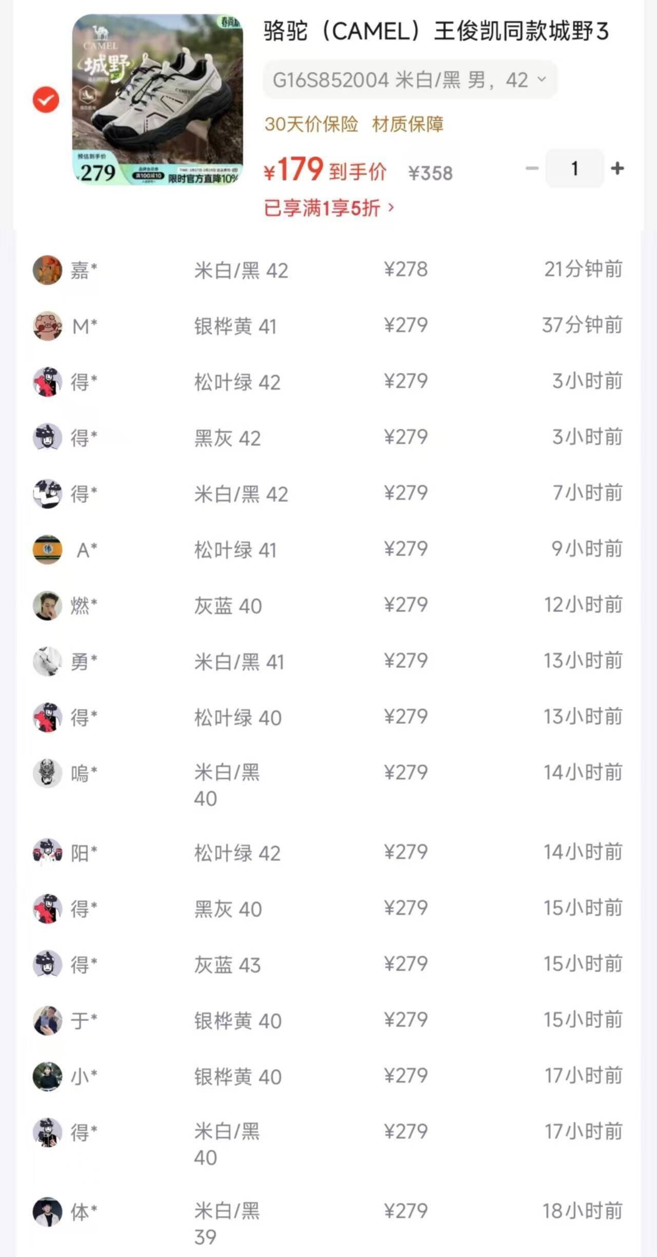 骆驼王俊凯同款城野3代老爹鞋,购物金到手仅需170元