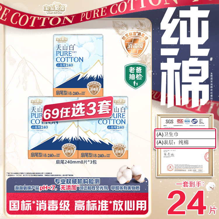 淘淘氧棉天山白卫生巾:Plus叠首购任选3件40.05元,单包低至4.4元