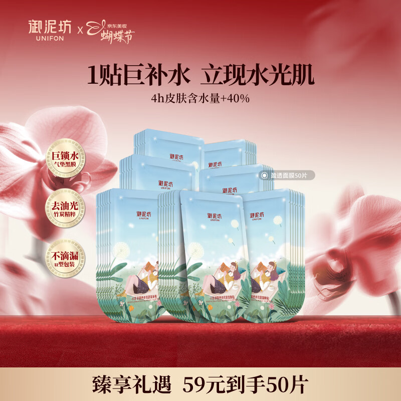 御泥坊盈透玻尿酸面膜50片仅59元包邮!PLUS会员专享56.05元抢购