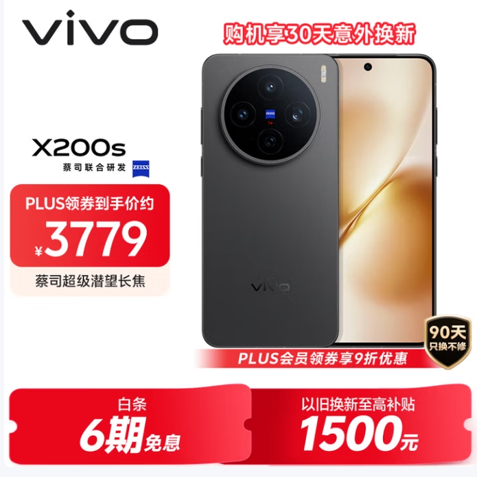 2958元包邮!vivo X200s 5G手机 12GB+256GB 简黑