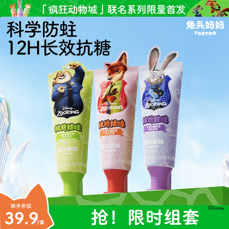 兔头妈妈儿童抗糖防蛀牙膏40g*3支 29.9元