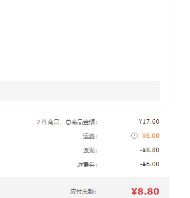 售价8.8元,下单2件享5折,到手8.8元,折合每件4.4元。