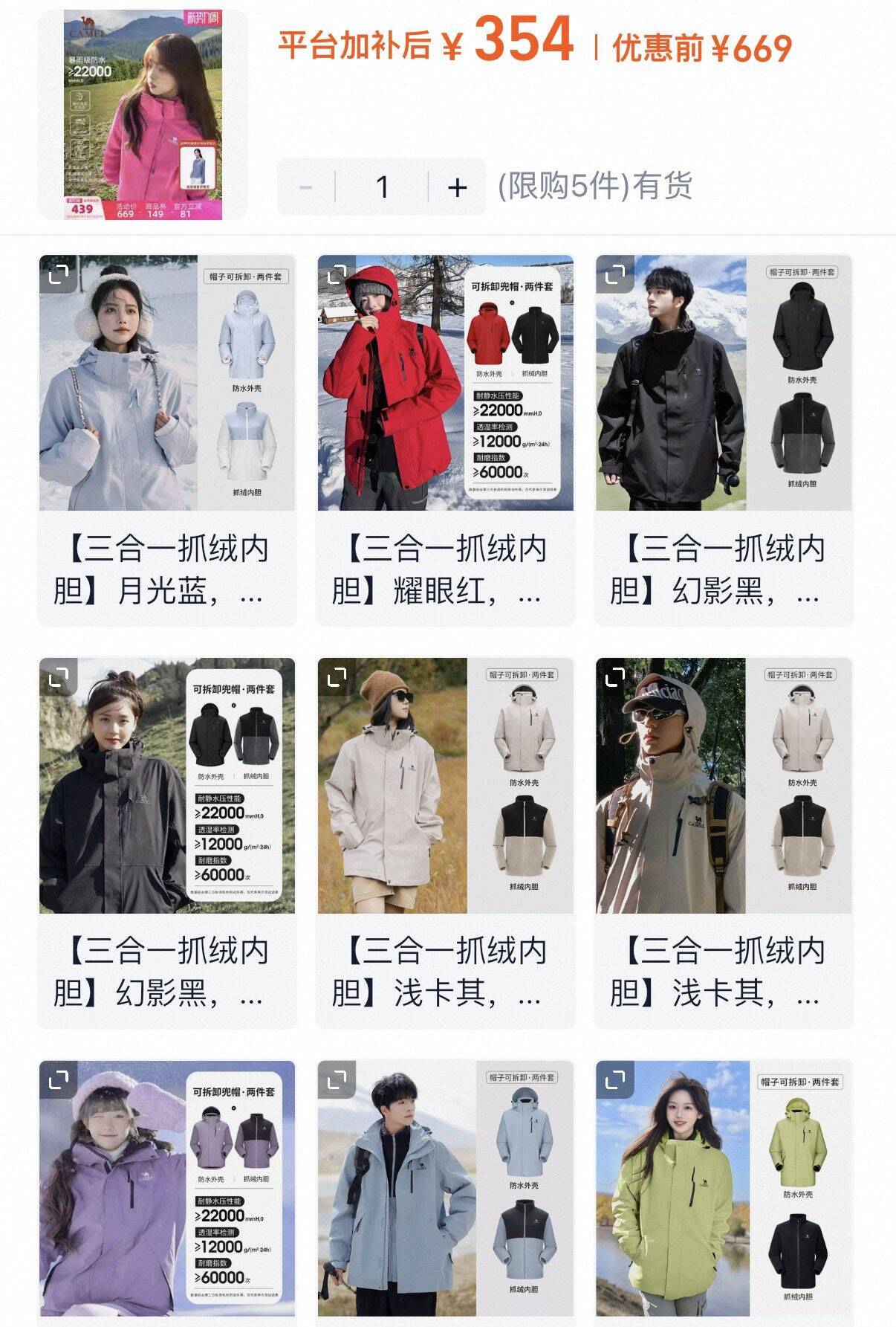 骆驼丁真同款三合一冲锋衣,最终到手价336元