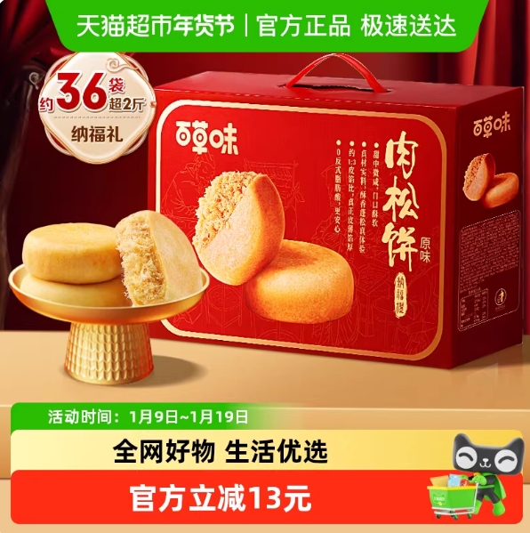 18.1元!百草味肉松饼年货礼盒1200g