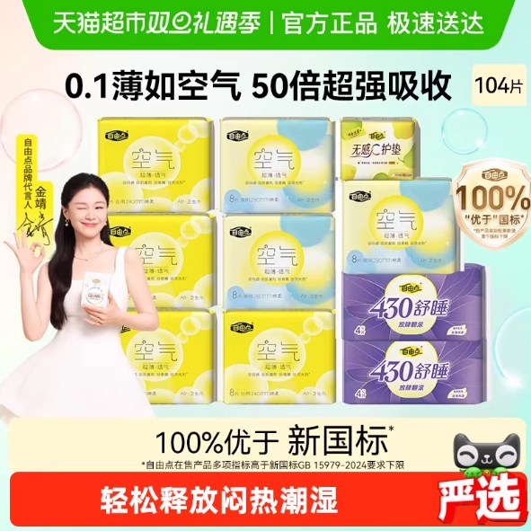 20.5元包邮!自由点 日夜用卫生巾104片