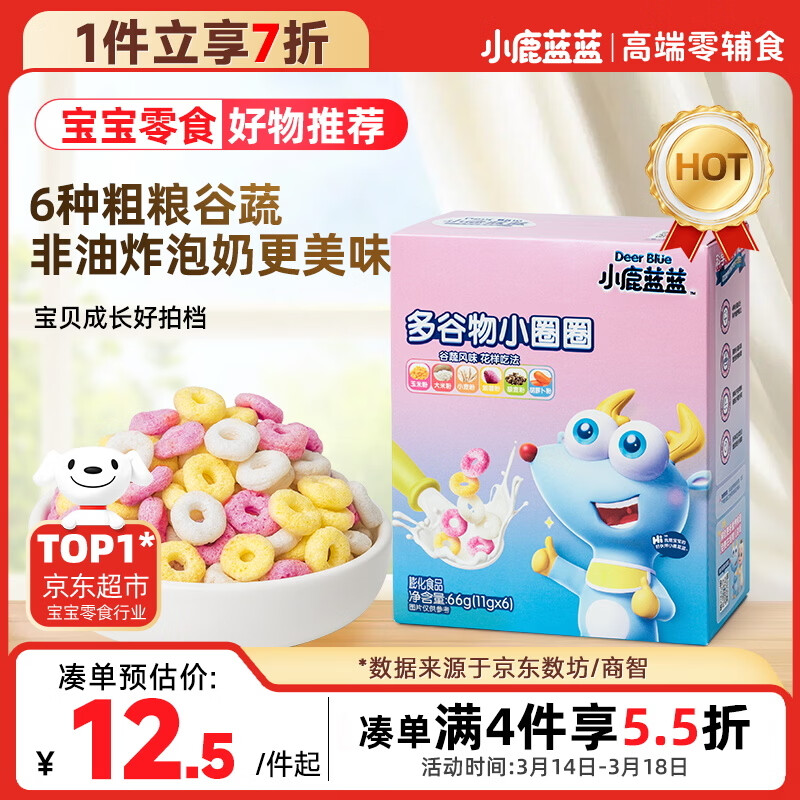 小鹿蓝蓝宝宝谷物圈 66g,弹3叠首单低至2.9元