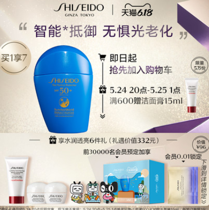 618预售价380元,加赠焕彩洁面50ml+凝霜10ml*2件,前3万件付定金还可以赠送哔哩哔哩定制礼盒一个!