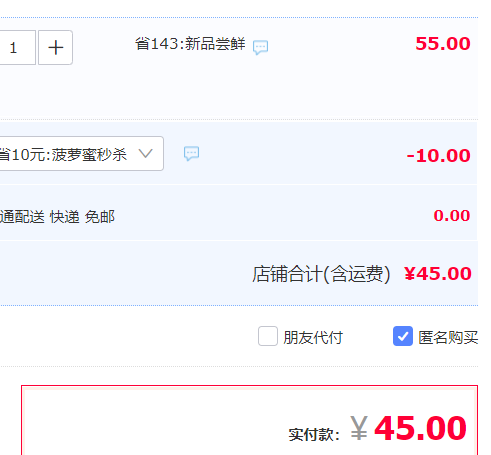 第1款售价¥55,可领取¥10优惠券,实付¥45元包邮,另有多款可选,发7~8成熟的果,不熟别生切