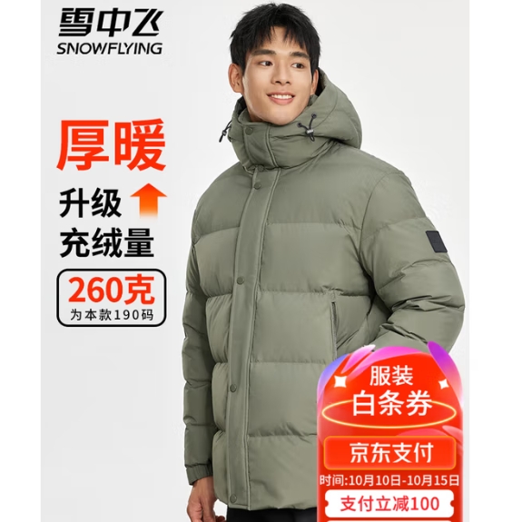 239元!雪中飞 极寒系列 升级版260g超级加厚羽绒服 90%绒 多色可选
