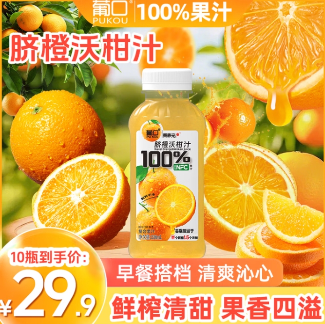 葡口100%果汁组合:首购低至16.9元,折合1.6元/瓶