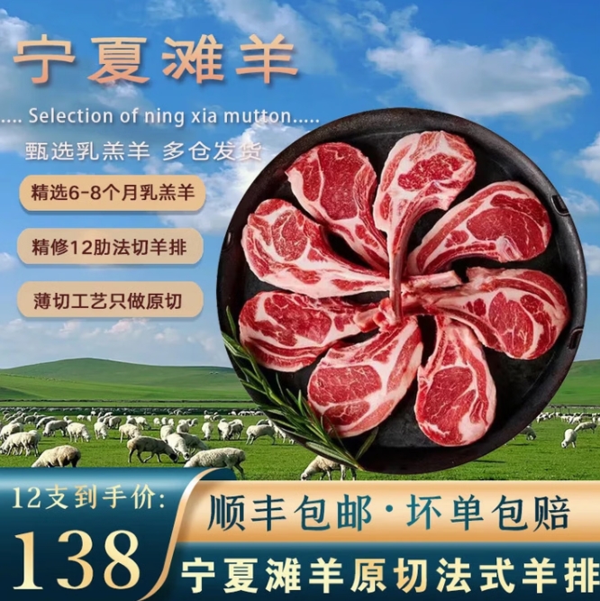 68元包邮!原切新鲜羔羊后腿肉法式羊排12支