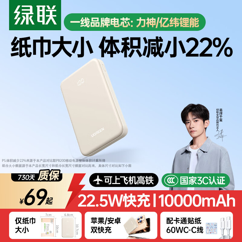 绿联充电宝20W快充仅52元,五一出游必备3C认证款