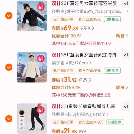 【淘宝】361 儿童 摇粒绒外套/卫裤/运动鞋合集