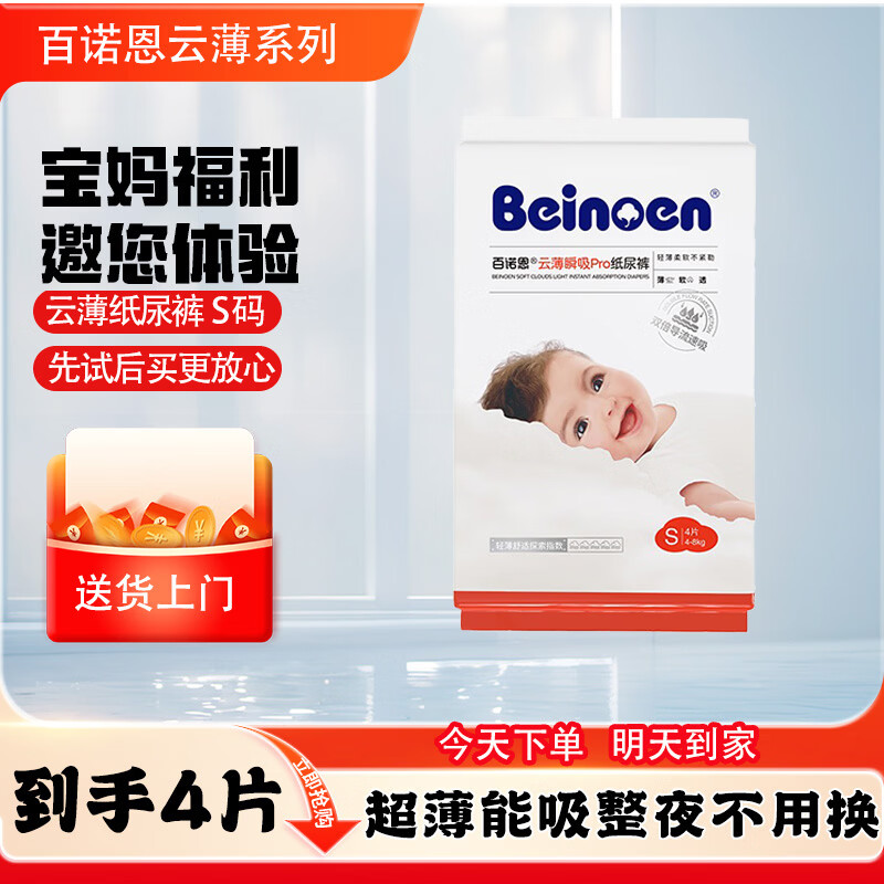 百诺恩云薄纸尿裤L码4片试用装,低至1元抢
