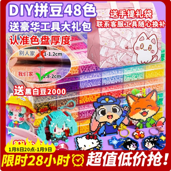 35.61元!丹米琦24色色拼豆豆熨斗手工diy套装