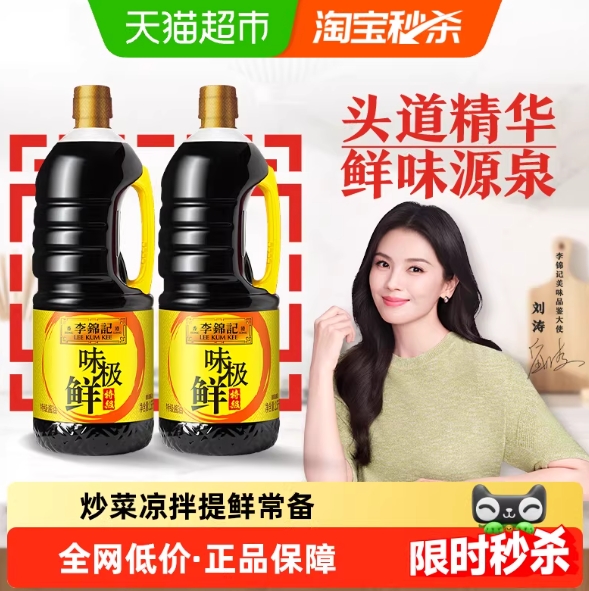 15.6元包邮!李锦记酱油1.5kg*2桶