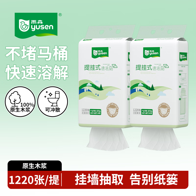 雨森提挂式速溶厕纸4层1220张*2提 最终到手价12.9元