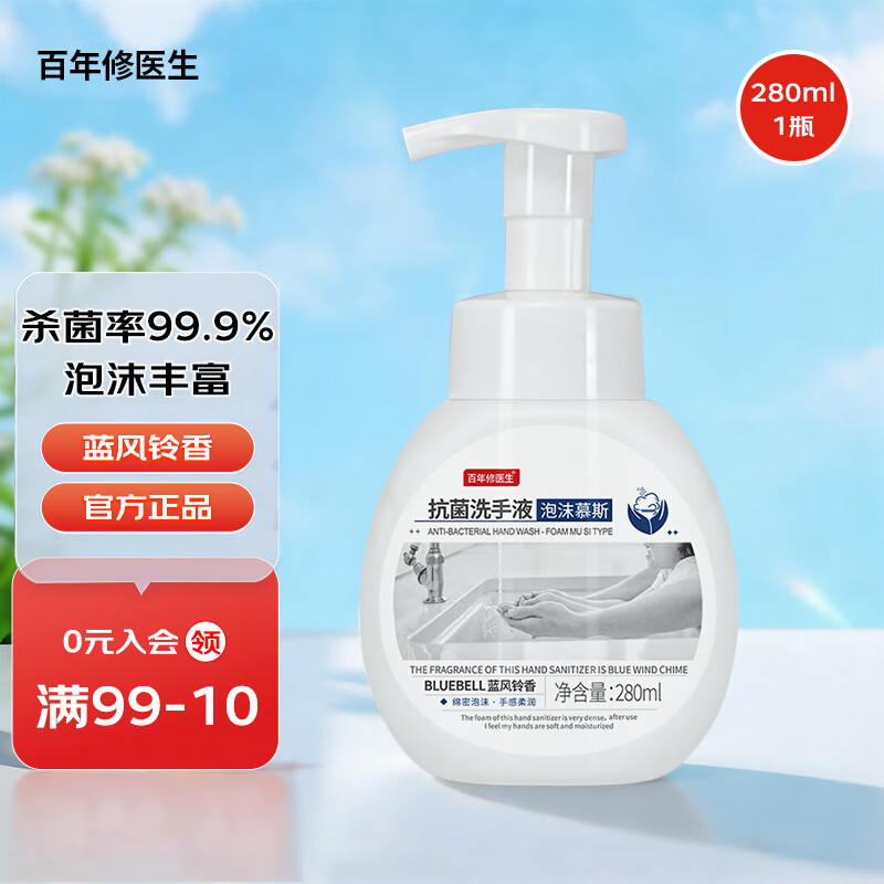 百年修医生泡沫洗手液280ml,蓝风铃香仅需1元