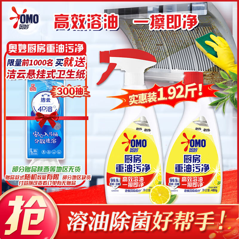 奥妙厨房清洁剂480g*2瓶,plus会员仅需16.9元