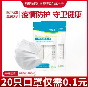 美团购物有0.1元20支口罩,包邮到手,小羊毛!