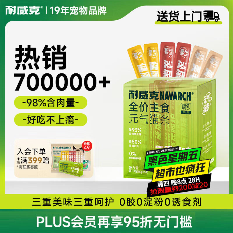 耐威克猫零食猫条54支叠加优惠后仅需13.03元